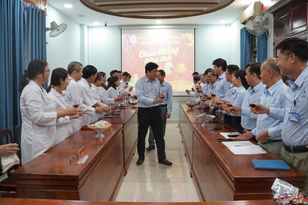 Buổi lễ diễn ra với sự hiện diện của Ban Giám đốc cùng lãnh đạo các khoa, phòng và toàn thể cán bộ, nhân viên bệnh viện. Ngay sau nghi thức chúc Tết và phát biểu chỉ đạo đầu năm, Ban lãnh đạo đã thực hiện nghi thức mở sâm banh khai xuân, gửi gắm thông điệp về sự khởi đầu thuận lợi, đoàn kết và bứt phá. Tiếng khui sâm banh vang lên như lời hiệu triệu cho một năm mới hành động mạnh mẽ, đổi mới quyết liệt và hoàn thành xuất sắc mọi nhiệm vụ. Buổi khai trương diễn ra trong tinh thần đoàn kết – kỷ cương – trách nhiệm. Những lời chúc đầu xuân không chỉ gửi gắm kỳ vọng về một năm thuận lợi, mà còn thể hiện quyết tâm chính trị cao, sẵn sàng hoàn thành xuất sắc mọi nhiệm vụ được giao.