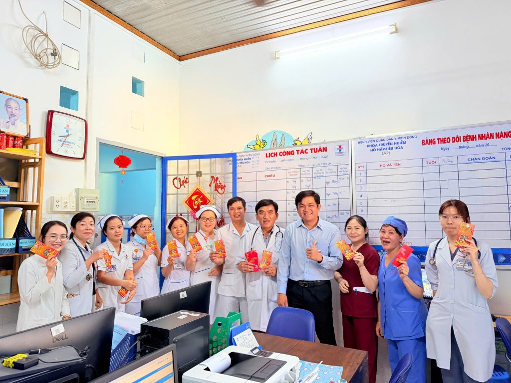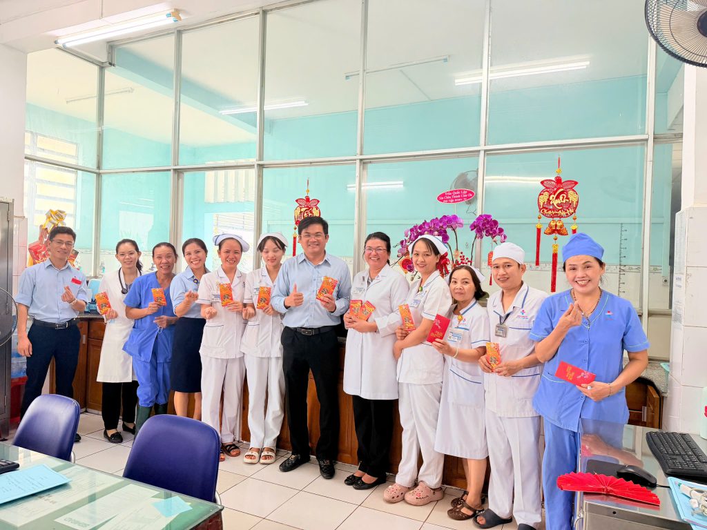 Trong không khí ấm áp nghĩa tình, lãnh đạo bệnh viện đã trao những phong bao lì xì đầu năm đến từng cán bộ, nhân viên như lời chúc sức khỏe, may mắn và thành công. Những nụ cười rạng rỡ, những cái bắt tay đầu xuân chính là động lực tinh thần to lớn, tiếp thêm khí thế thi đua sôi nổi ngay từ những ngày làm việc đầu tiên.
