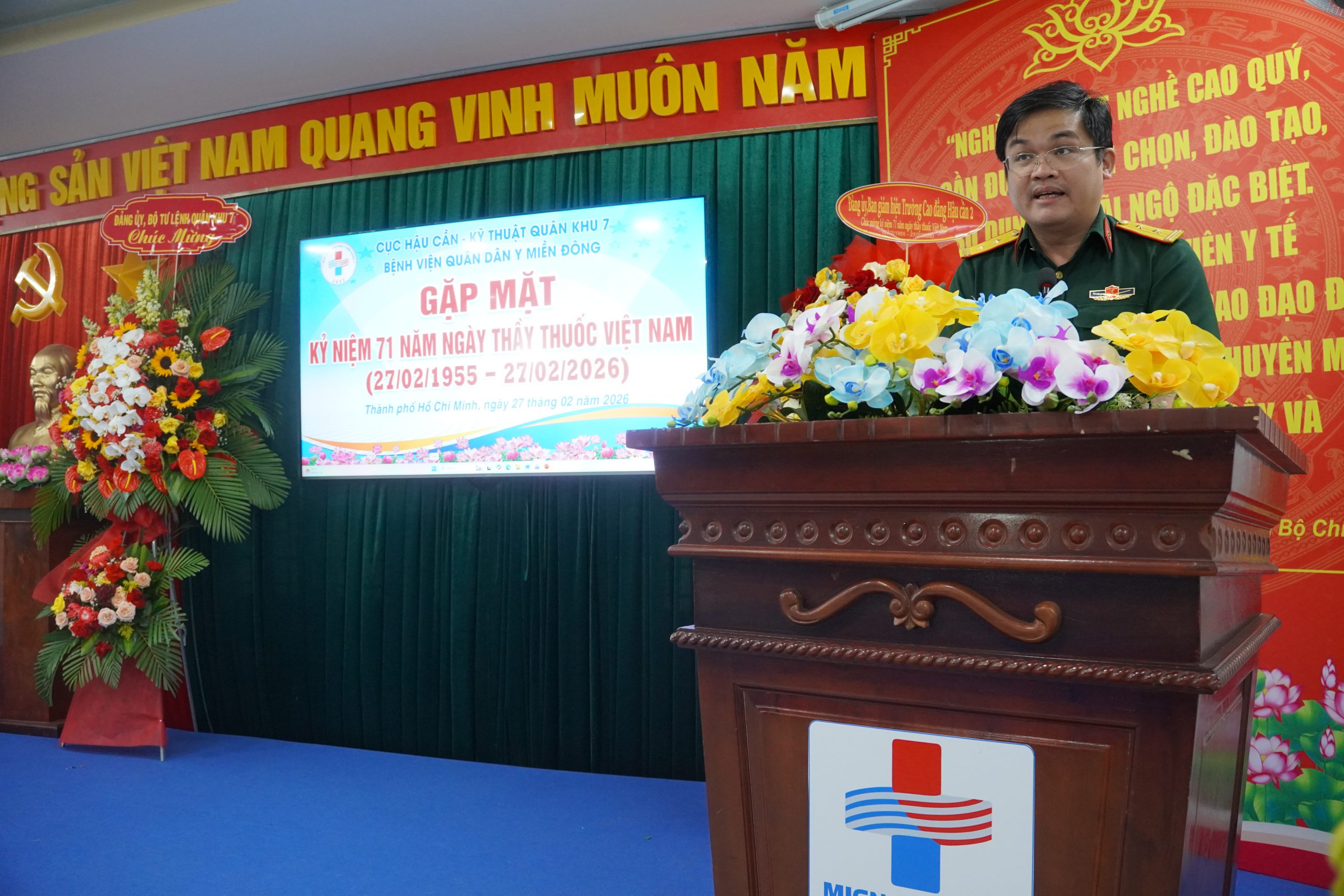 Phát biểu chỉ đạo tại Hội nghị, Đại tá Nguyễn Mạnh Kiên, Trưởng Phòng Quân y, Cục Hậu cần – Kỹ thuật Quân khu đã biểu dương những thành tích Bệnh viện đạt được trong 6 tháng đầu năm 2025. Đồng chí Trưởng Phòng Quân y tin rằng, với sự quyết tâm, đồng lòng của toàn thể cán bộ, nhân viên, dưới sự lãnh đạo của Đảng ủy, Ban Giám đốc Bệnh viện, Bệnh viện Quân Dân Y Miền Đông sẽ hoàn thành xuất sắc mọi nhiệm vụ được giao trong 6 tháng cuối năm, góp phần xây dựng ngành Quân y vững mạnh, đáp ứng yêu cầu nhiệm vụ trong tình hình mới.