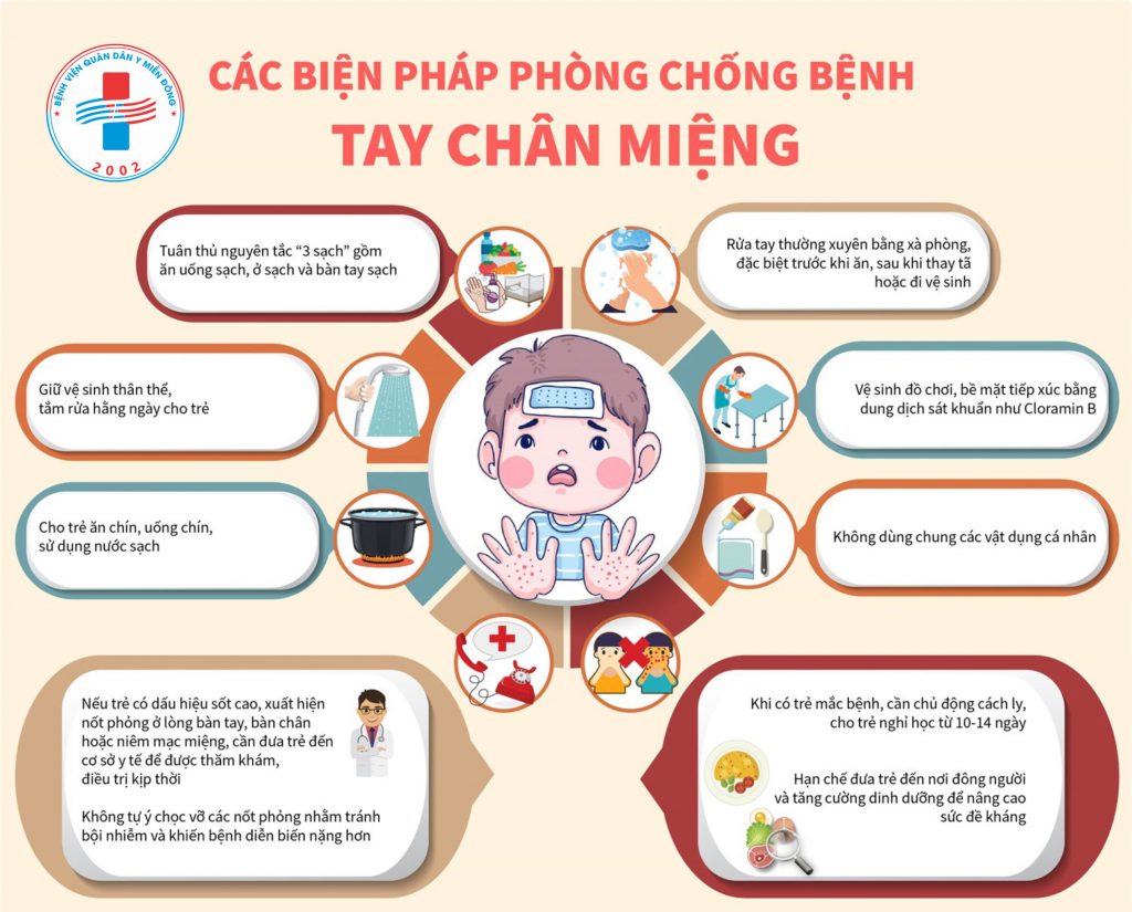 Để phòng ngừa bệnh tay chân miệng hiệu quả, các chuyên gia y tế khuyến cáo cần tuân thủ nguyên tắc “3 sạch” gồm ăn uống sạch, ở sạch và bàn tay sạch; rửa tay thường xuyên bằng xà phòng, đặc biệt trước khi ăn, sau khi thay tã hoặc đi vệ sinh; giữ vệ sinh thân thể, tắm rửa hằng ngày cho trẻ và vệ sinh đồ chơi, bề mặt tiếp xúc bằng dung dịch sát khuẩn như Cloramin B. Đồng thời, cho trẻ ăn chín, uống chín, sử dụng nước sạch và không dùng chung các vật dụng cá nhân…